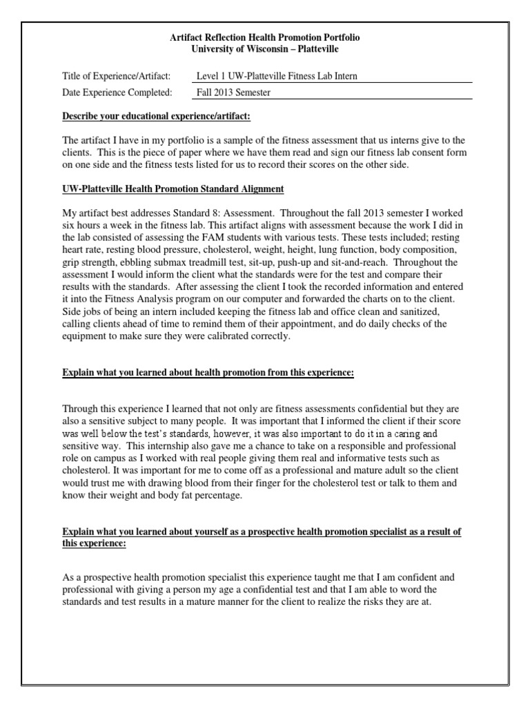 Hp Artifact 8 Assessment Physical Fitness Internship