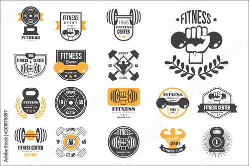 Vector Set Of Retro Fitness Logo Templates Emblems With Dumbbells