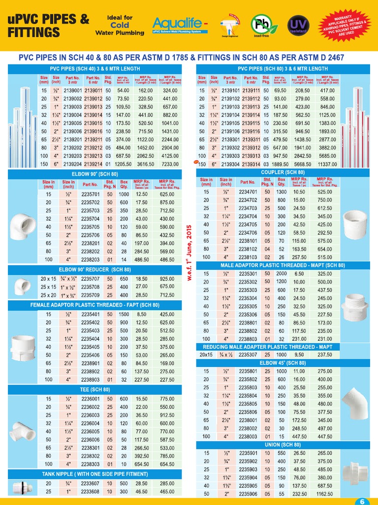 Ashirvad Upvc Pipes And Fittings Pricelist
