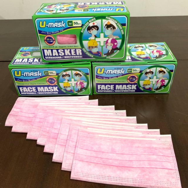 Fit U Mask Masker Earloop 3ply W Filter Bacteria 99 Color Pink
