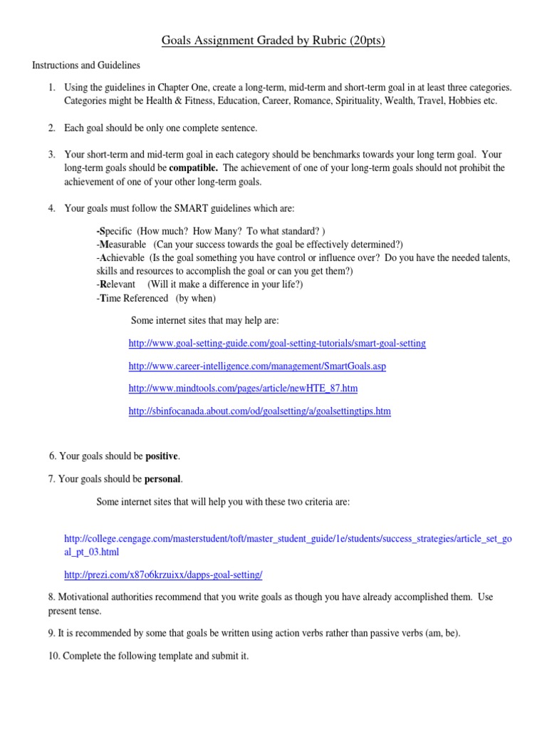 Ch 1 Goals Assignment Goal Motivation