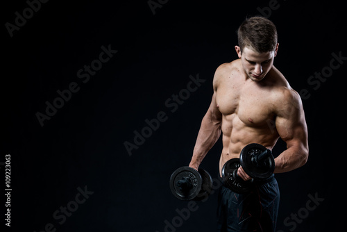 Handsome Power Athletic Man Training Pumping Up Muscles With