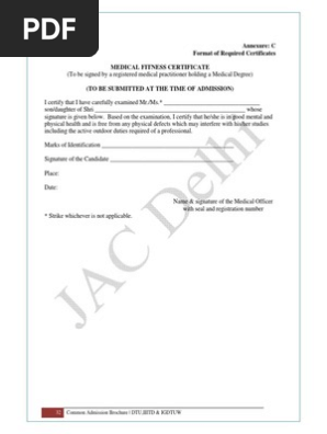 Jac Delhi Medical Fitness Certificate