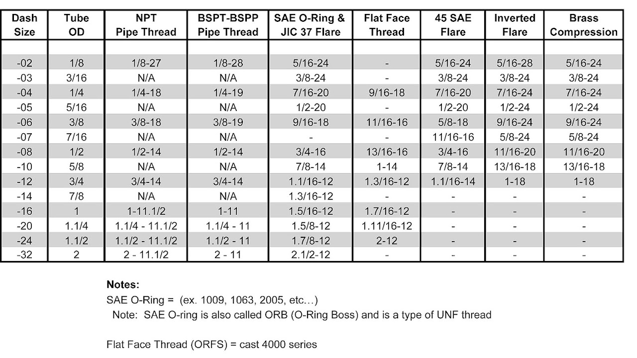 Jic Fitting Jic Size Chart