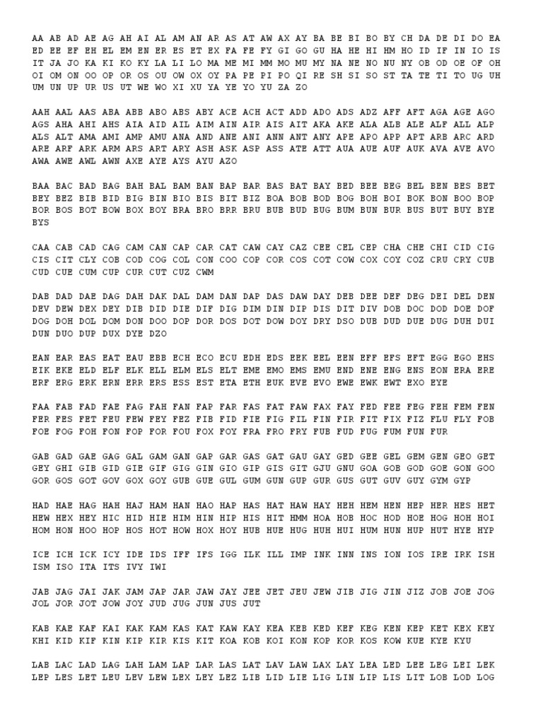 Aa Ab Ad Ae Ag Ah Ai Al Am An Ar As At Aw Ax Ay Ba Be Bi Bo By Ch
