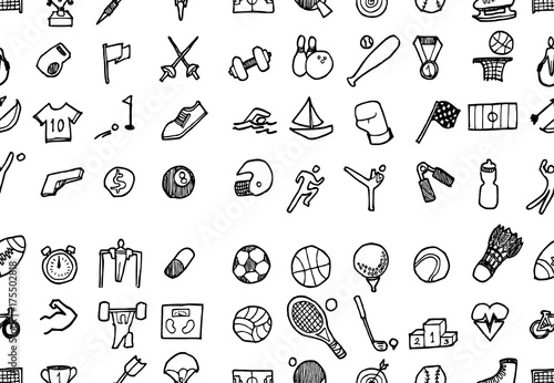Hand Drawn Seamless Pattern With Decorative Fitness Isolated